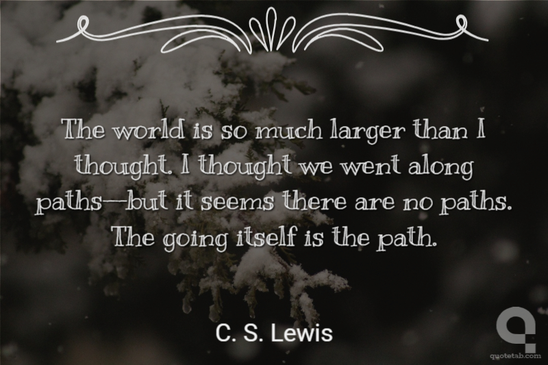 The world is so much larger than I thought. I thought we went along paths--but it seems there are no paths. The going itself is the path.