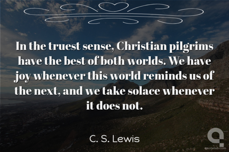 In the truest sense, Christian pilgrims have the best of both worlds. We have joy whenever this world reminds us of the next, and we take solace whenever it does not.