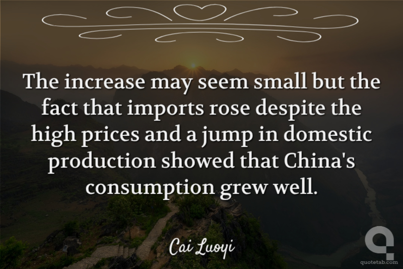 The increase may seem small but the fact that imports rose despite the high prices and a jump in domestic production showed that China's consumption grew well.