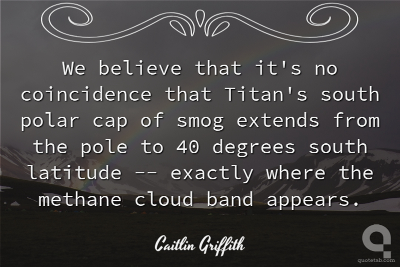 We believe that it's no coincidence that Titan's south polar cap of smog extends from the pole to 40 degrees south latitude -- exactly where the methane cloud band appears.