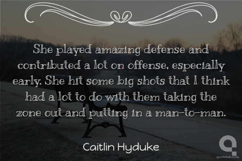 She played amazing defense and contributed a lot on offense, especially early. She hit some big shots that I think had a lot to do with them taking the zone out and putting in a man-to-man.