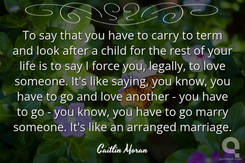To say that you have to carry to term and look after a child for the rest of your life is to say I force you, legally, to love someone. It's like saying, you know, you have to go and love another - you have to go - you know, you have to go marry someone. It's like an arranged marriage.