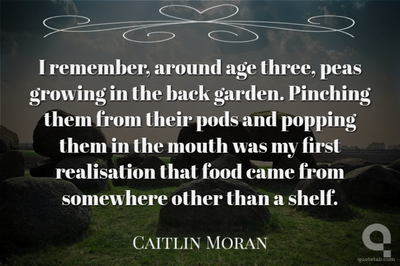 I remember, around age three, peas growing in the back garden. Pinching them from their pods and popping them in the mouth was my first realisation that food came from somewhere other than a shelf.
