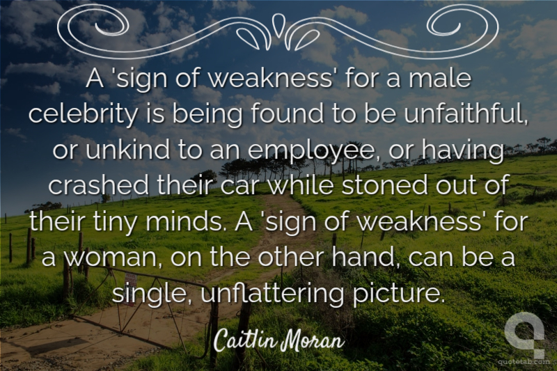 A 'sign of weakness' for a male celebrity is being found to be unfaithful, or unkind to an employee, or having crashed their car while stoned out of their tiny minds. A 'sign of weakness' for a woman, on the other hand, can be a single, unflattering picture.
