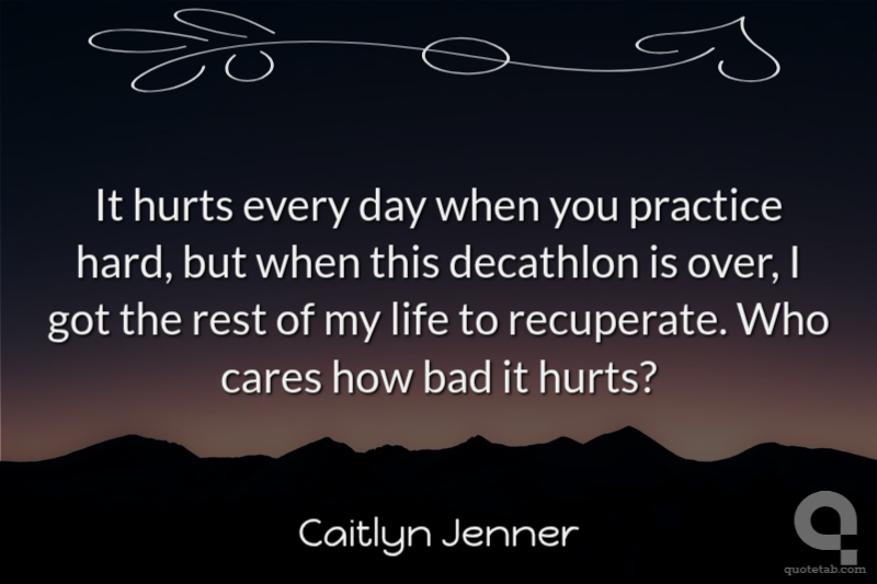 It hurts every day when you practice hard, but when this decathlon is over, I got the rest of my life to recuperate. Who cares how bad it hurts?