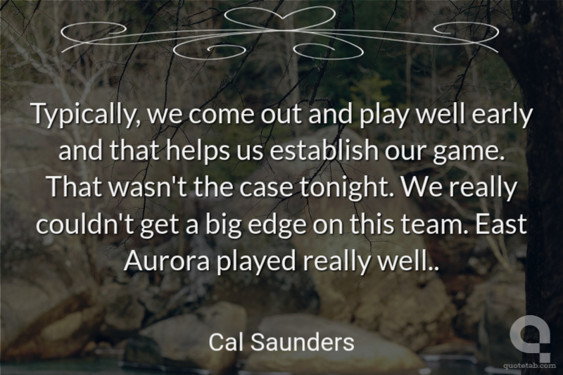 Typically, we come out and play well early and that helps us establish our game. That wasn't the case tonight. We really couldn't get a big edge on this team. East Aurora played really well..