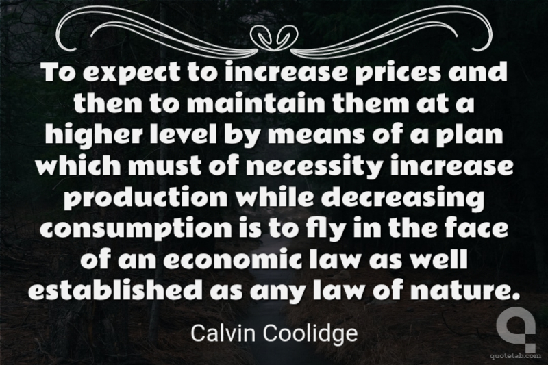 To expect to increase prices and then to maintain them at a higher level by means of a plan which must of necessity increase production while decreasing consumption is to fly in the face of an economic law as well established as any law of nature.