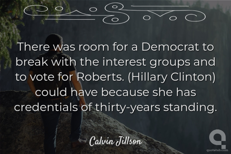 There was room for a Democrat to break with the interest groups and to vote for Roberts. (Hillary Clinton) could have because she has credentials of thirty-years standing.