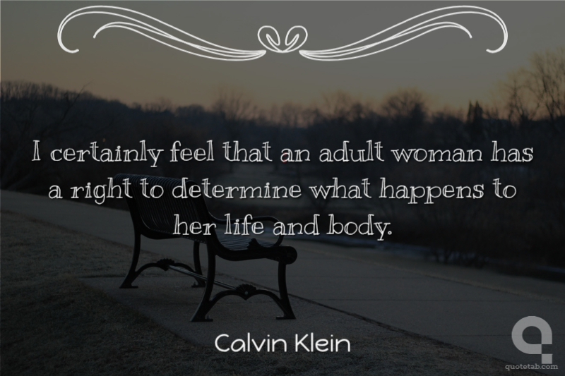 I certainly feel that an adult woman has a right to determine what happens to her life and body.