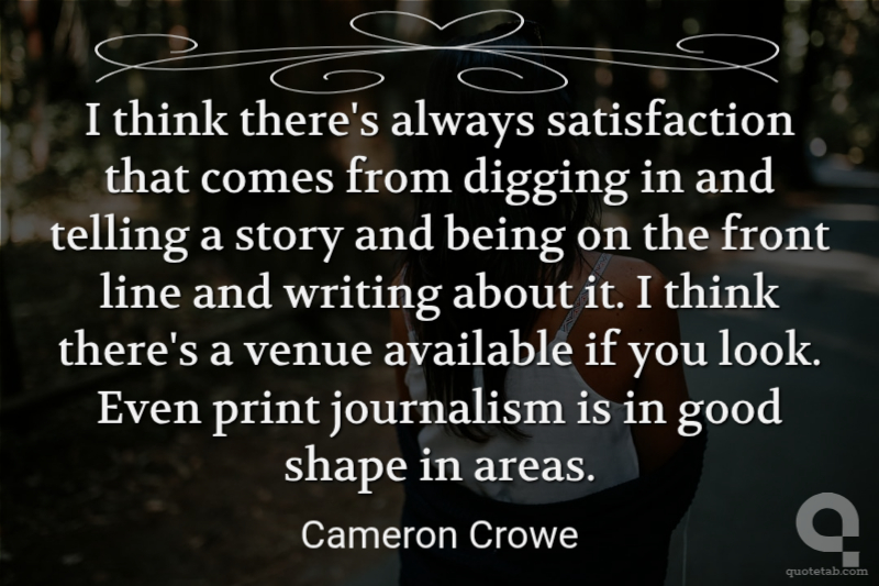 I think there's always satisfaction that comes from digging in and telling a story and being on the front line and writing about it. I think there's a venue available if you look. Even print journalism is in good shape in areas.