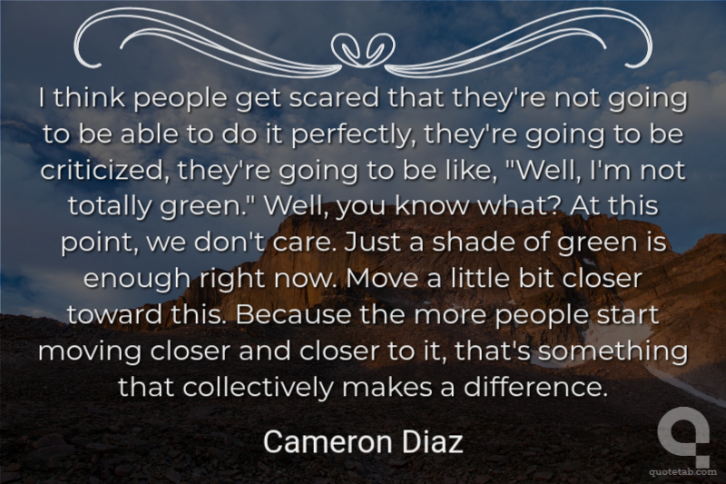 I think people get scared that they're not going to be able to do it perfectly, they're going to be criticized, they're going to be like, "Well, I'm not totally green." Well, you know what? At this point, we don't care. Just a shade of green is enough right now. Move a little bit closer toward this. Because the more people start moving closer and closer to it, that's something that collectively makes a difference.