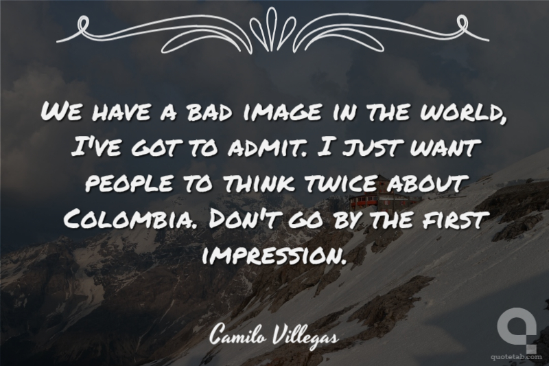 We have a bad image in the world, I've got to admit. I just want people to think twice about Colombia. Don't go by the first impression.
