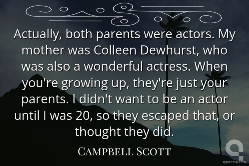 Actually, both parents were actors. My mother was Colleen Dewhurst, who was also a wonderful actress. When you're growing up, they're just your parents. I didn't want to be an actor until I was 20, so they escaped that, or thought they did.