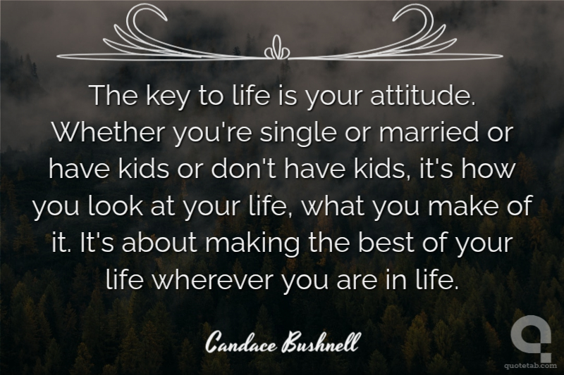 The key to life is your attitude. Whether you're single or married or have kids or don't have kids, it's how you look at your life, what you make of it. It's about making the best of your life wherever you are in life.