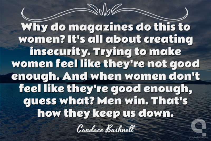 Why do magazines do this to women? It's all about creating insecurity. Trying to make women feel like they're not good enough. And when women don't feel like they're good enough, guess what? Men win. That's how they keep us down.