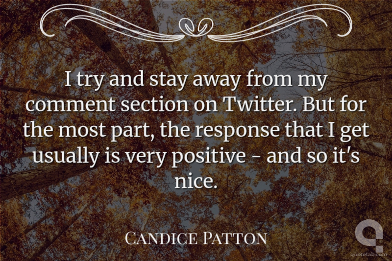I try and stay away from my comment section on Twitter. But for the most part, the response that I get usually is very positive - and so it's nice.