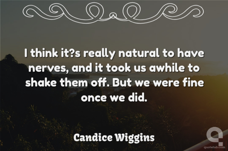 I think it?s really natural to have nerves, and it took us awhile to shake them off. But we were fine once we did.