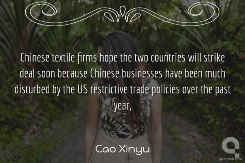 Chinese textile firms hope the two countries will strike deal soon because Chinese businesses have been much disturbed by the US restrictive trade policies over the past year,