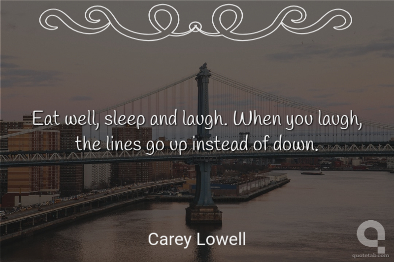 Eat well, sleep and laugh. When you laugh, the lines go up instead of down.