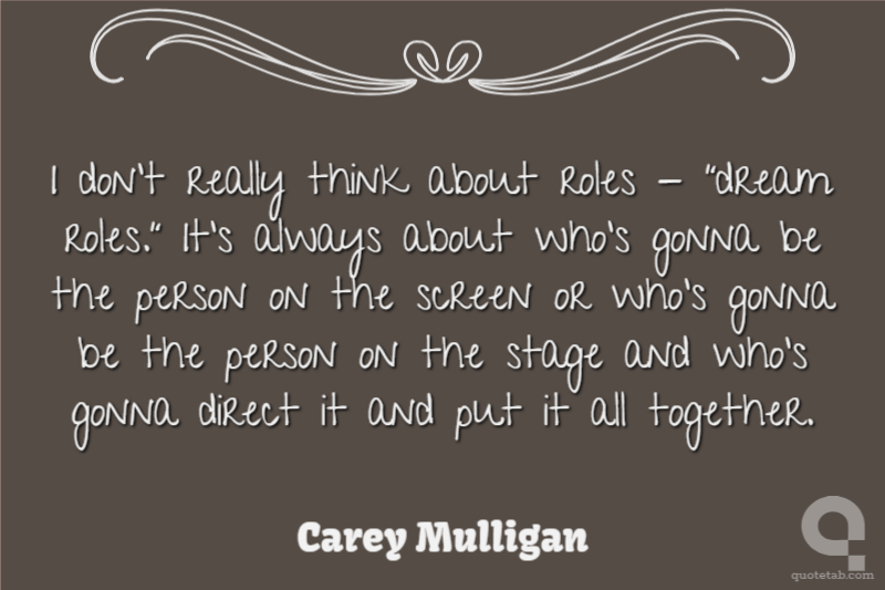 I don't really think about roles - "dream roles." It's always about who's gonna be the person on the screen or who's gonna be the person on the stage and who's gonna direct it and put it all together.