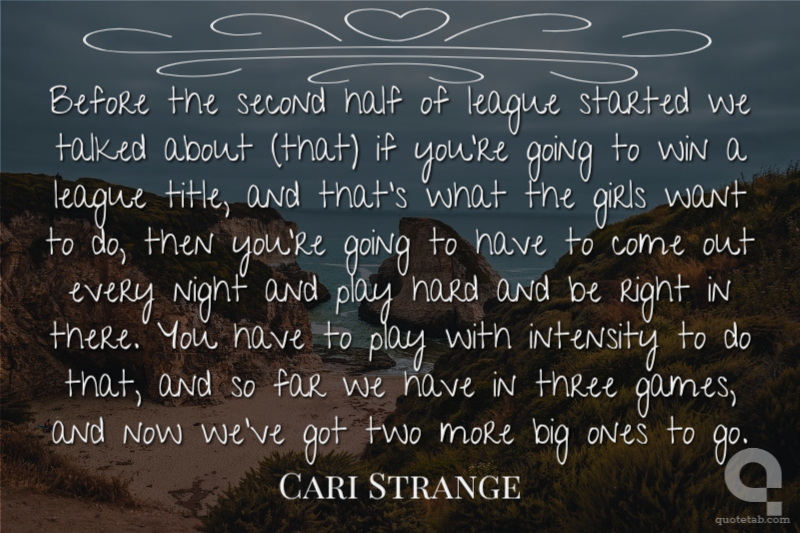 Before the second half of league started we talked about (that) if you're going to win a league title, and that's what the girls want to do, then you're going to have to come out every night and play hard and be right in there. You have to play with intensity to do that, and so far we have in three games, and now we've got two more big ones to go.