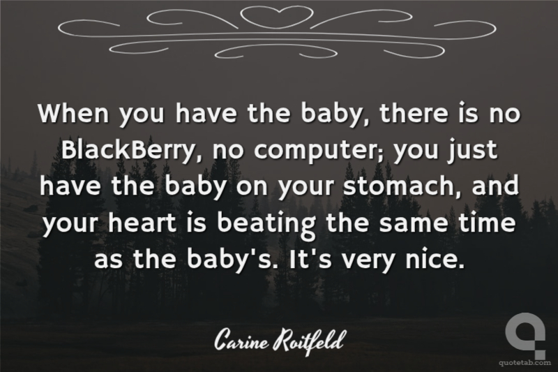 When you have the baby, there is no BlackBerry, no computer; you just have the baby on your stomach, and your heart is beating the same time as the baby's. It's very nice.
