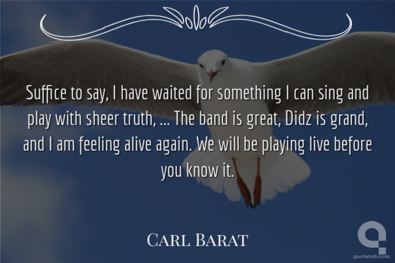 Suffice to say, I have waited for something I can sing and play with sheer truth, ... The band is great, Didz is grand, and I am feeling alive again. We will be playing live before you know it.