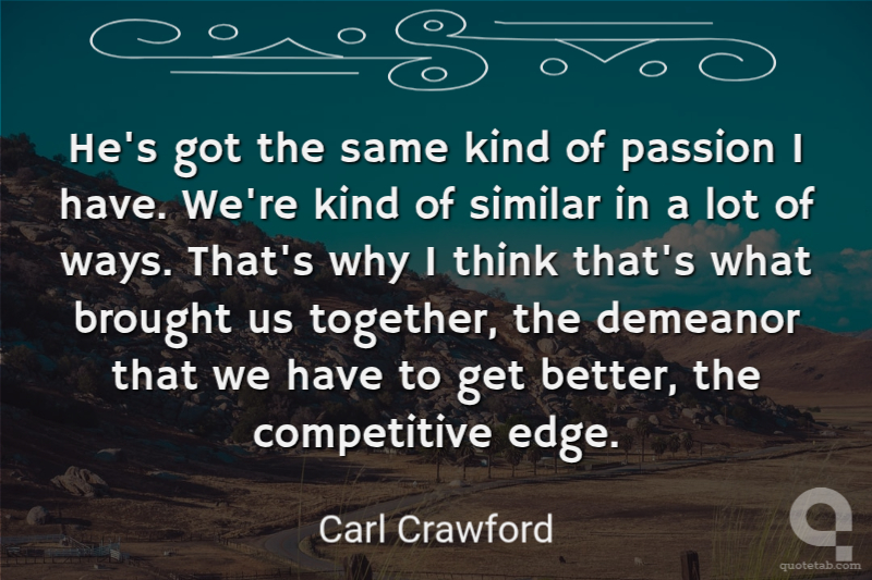 He's got the same kind of passion I have. We're kind of similar in a lot of ways. That's why I think that's what brought us together, the demeanor that we have to get better, the competitive edge.