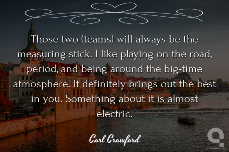 Those two (teams) will always be the measuring stick. I like playing on the road, period, and being around the big-time atmosphere. It definitely brings out the best in you. Something about it is almost electric.
