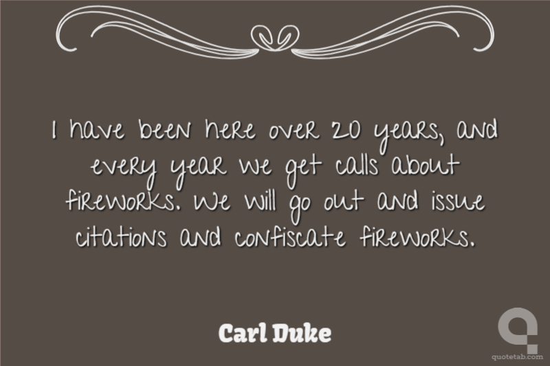 I have been here over 20 years, and every year we get calls about fireworks. We will go out and issue citations and confiscate fireworks.