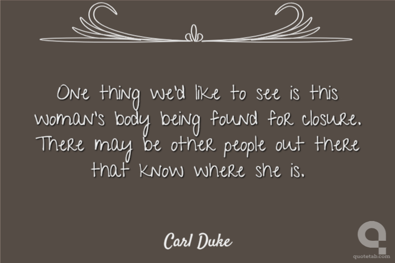 One thing we'd like to see is this woman's body being found for closure. There may be other people out there that know where she is.