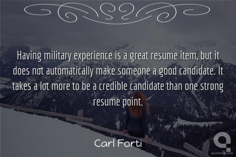 Having military experience is a great resume item, but it does not automatically make someone a good candidate. It takes a lot more to be a credible candidate than one strong resume point.