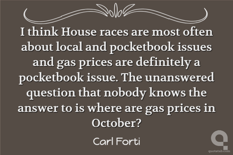 I think House races are most often about local and pocketbook issues and gas prices are definitely a pocketbook issue. The unanswered question that nobody knows the answer to is where are gas prices in October?