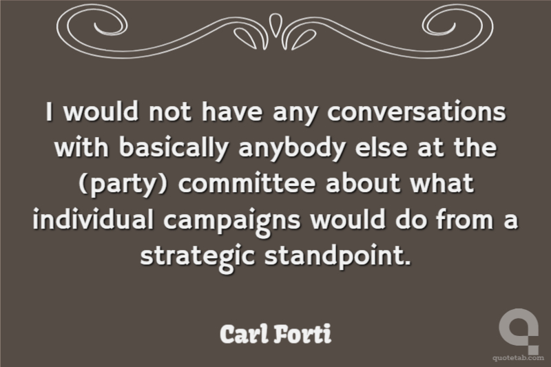 I would not have any conversations with basically anybody else at the (party) committee about what individual campaigns would do from a strategic standpoint.