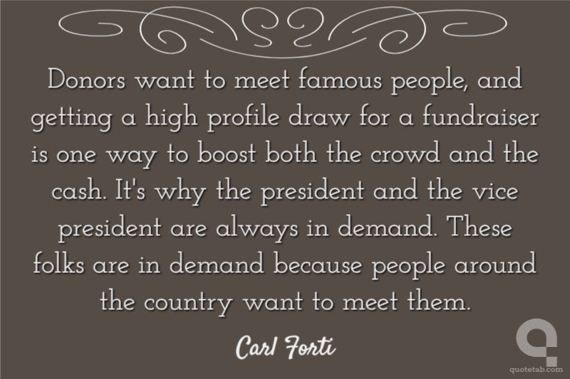 Donors want to meet famous people, and getting a high profile draw for a fundraiser is one way to boost both the crowd and the cash. It's why the president and the vice president are always in demand. These folks are in demand because people around the country want to meet them.