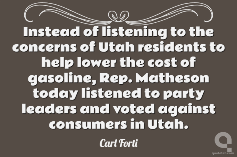 Instead of listening to the concerns of Utah residents to help lower the cost of gasoline, Rep. Matheson today listened to party leaders and voted against consumers in Utah.