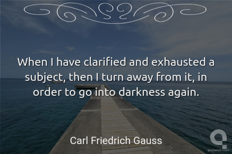 When I have clarified and exhausted a subject, then I turn away from it, in order to go into darkness again.