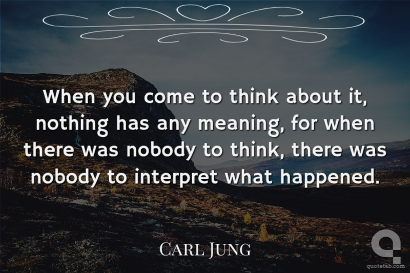 When you come to think about it, nothing has any meaning, for when there was nobody to think, there was nobody to interpret what happened.