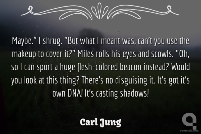 Maybe." I shrug. "But what I meant was, can't you use the makeup to cover it?" Miles rolls his eyes and scowls. "Oh, so I can sport a huge flesh-colored beacon instead? Would you look at this thing? There's no disguising it. It's got it's own DNA! It's casting shadows!
