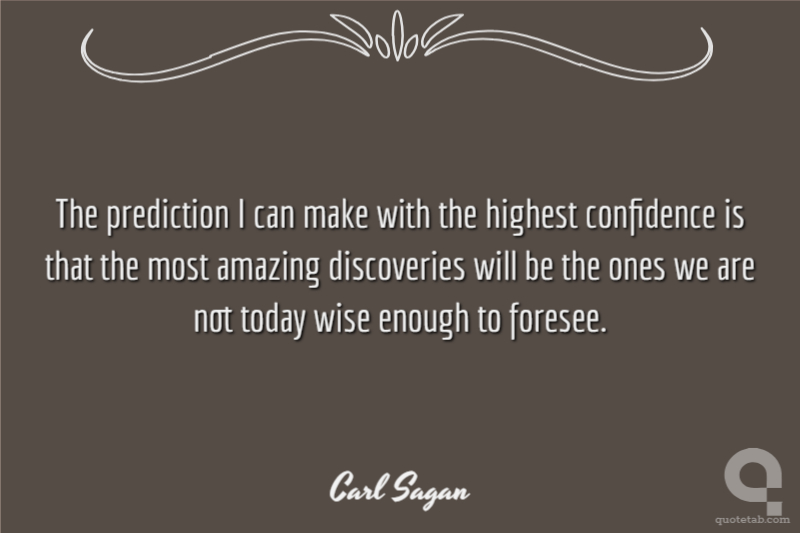 The prediction I can make with the highest confidence is that the most amazing discoveries will be the ones we are not today wise enough to foresee.