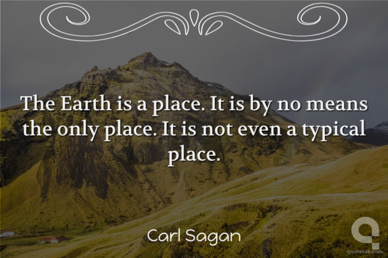 The Earth is a place. It is by no means the only place. It is not even a typical place.