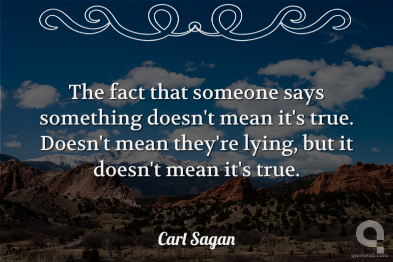 The fact that someone says something doesn't mean it's true. Doesn't mean they're lying, but it doesn't mean it's true.