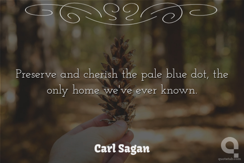 The Earth is the only world known so far to harbor life. There is nowhere else, at least in the near future, to which our species could migrate. Visit, yes. Settle, not yet. Like it or not, for the moment the Earth is where we make our stand. It has been said that astronomy is a humbling and character-building experience..... To me, it underscores our responsibility to deal more kindly with one another, and to preserve and cherish the pale blue dot, the only home we've ever known.