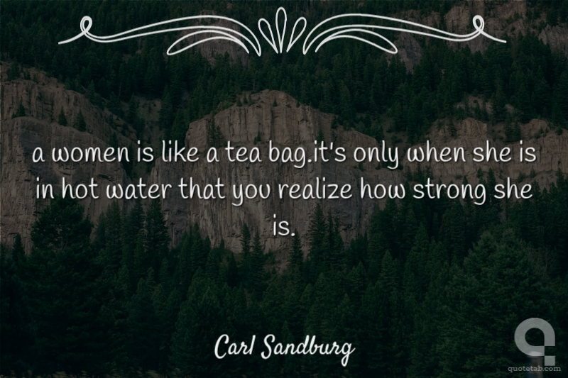 a women is like a tea bag.it's only when she is in hot water that you realize how strong she is.