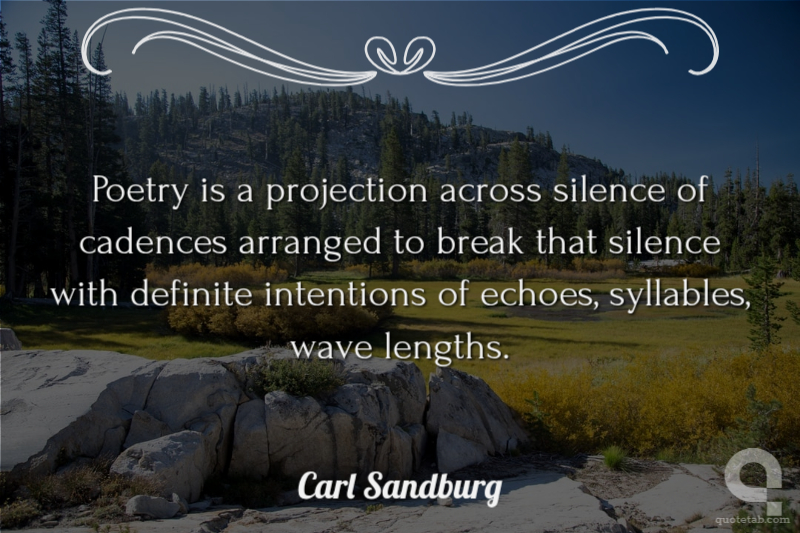Poetry is a projection across silence of cadences arranged to break that silence with definite intentions of echoes, syllables, wave lengths.