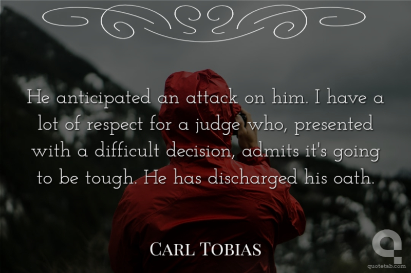 He anticipated an attack on him. I have a lot of respect for a judge who, presented with a difficult decision, admits it's going to be tough. He has discharged his oath.