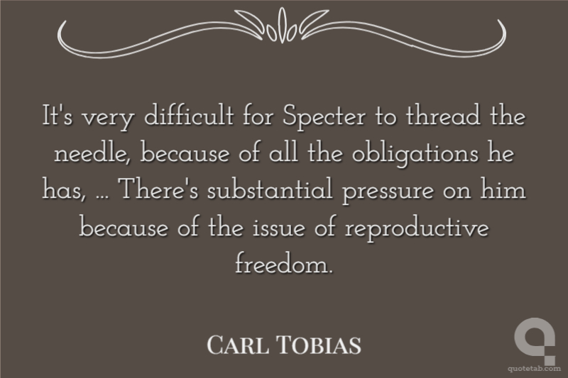 It's very difficult for Specter to thread the needle, because of all the obligations he has, ... There's substantial pressure on him because of the issue of reproductive freedom.