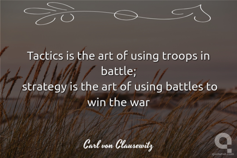 Tactics is the art of using troops in battle; strategy is the art of using battles to win the war