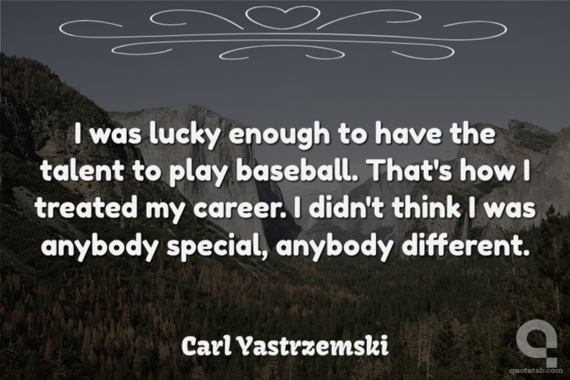 I was lucky enough to have the talent to play baseball. That's how I treated my career. I didn't think I was anybody special, anybody different.