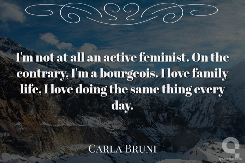 I'm not at all an active feminist. On the contrary, I'm a bourgeois. I love family life, I love doing the same thing every day.